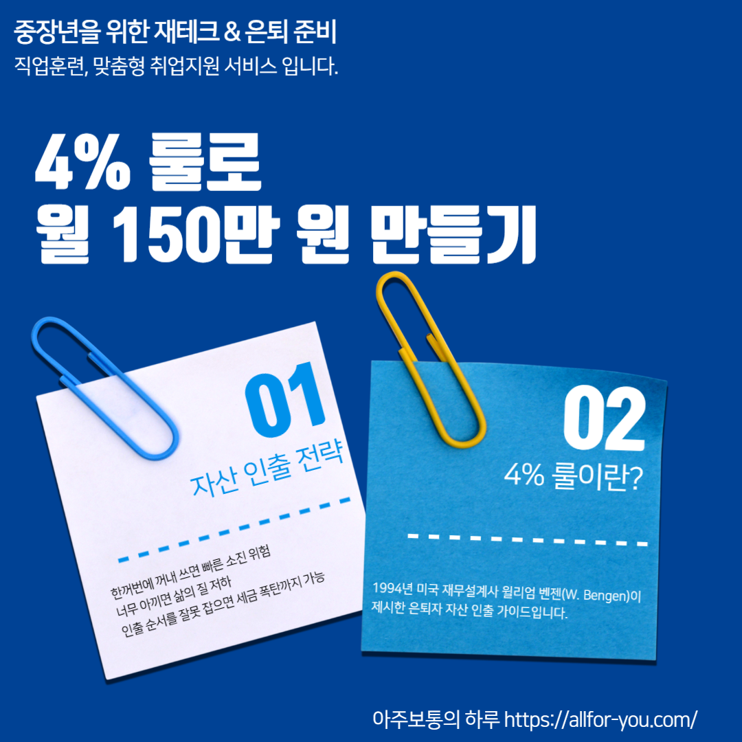 퇴직 후 자산을 어떻게 인출해야 오래 쓸 수 있을까? 4% 인출 전략, 연금·투자·현금 흐름을 조합한 인출 순서를 정리합니다.