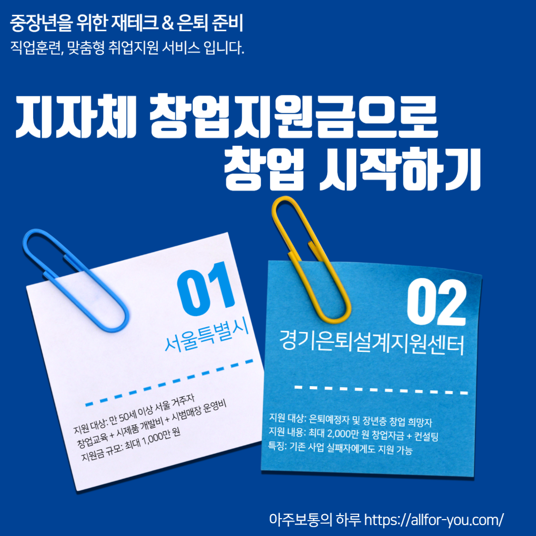 #지자체창업지원금 #은퇴창업지원 #50대창업 #중장년창업 #서울창업허브 #경기창업센터 #부산창업지원 #소자본창업지원금