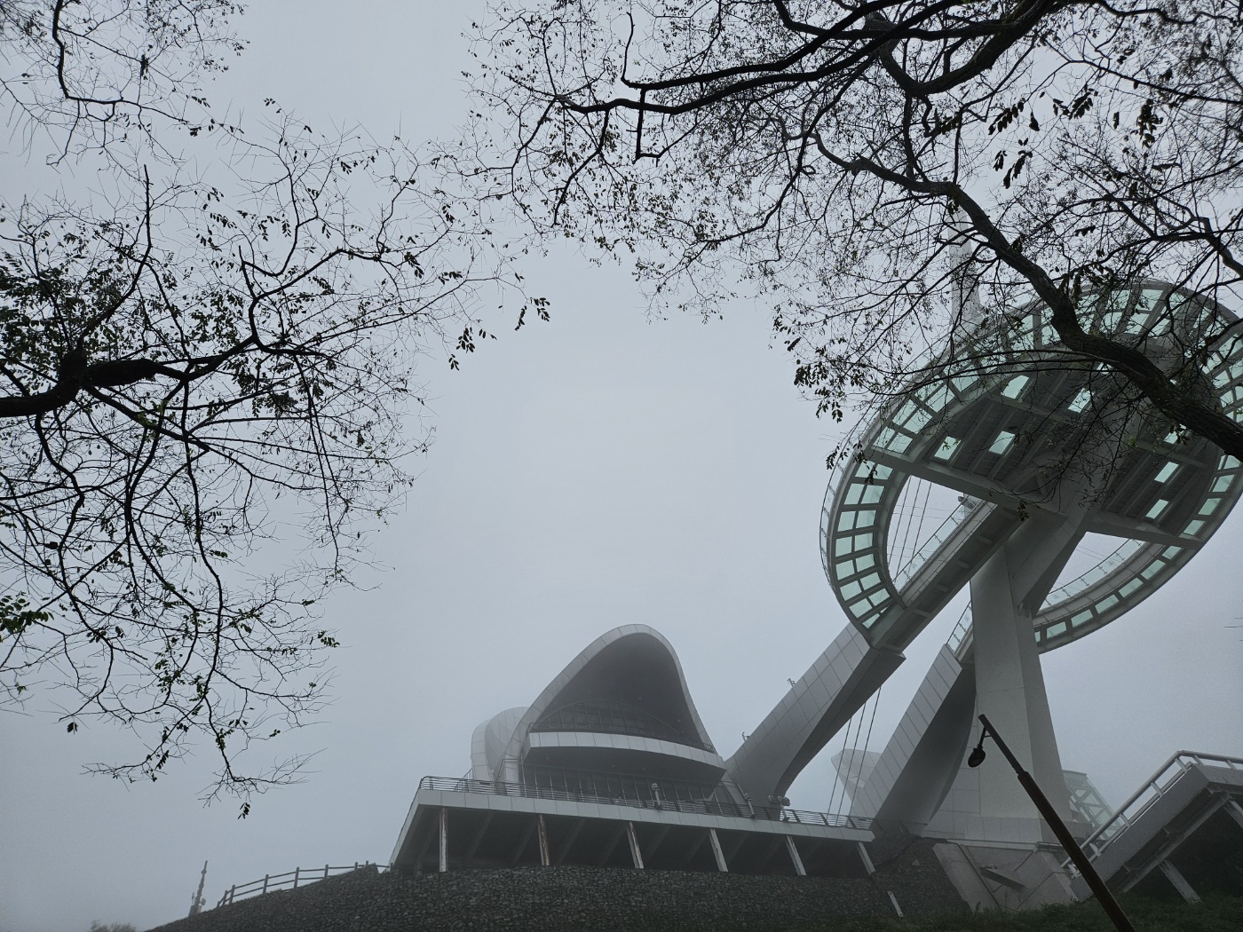 안개에 가려진 전망대는 몽환적인 분위기를 자아냈습니다.