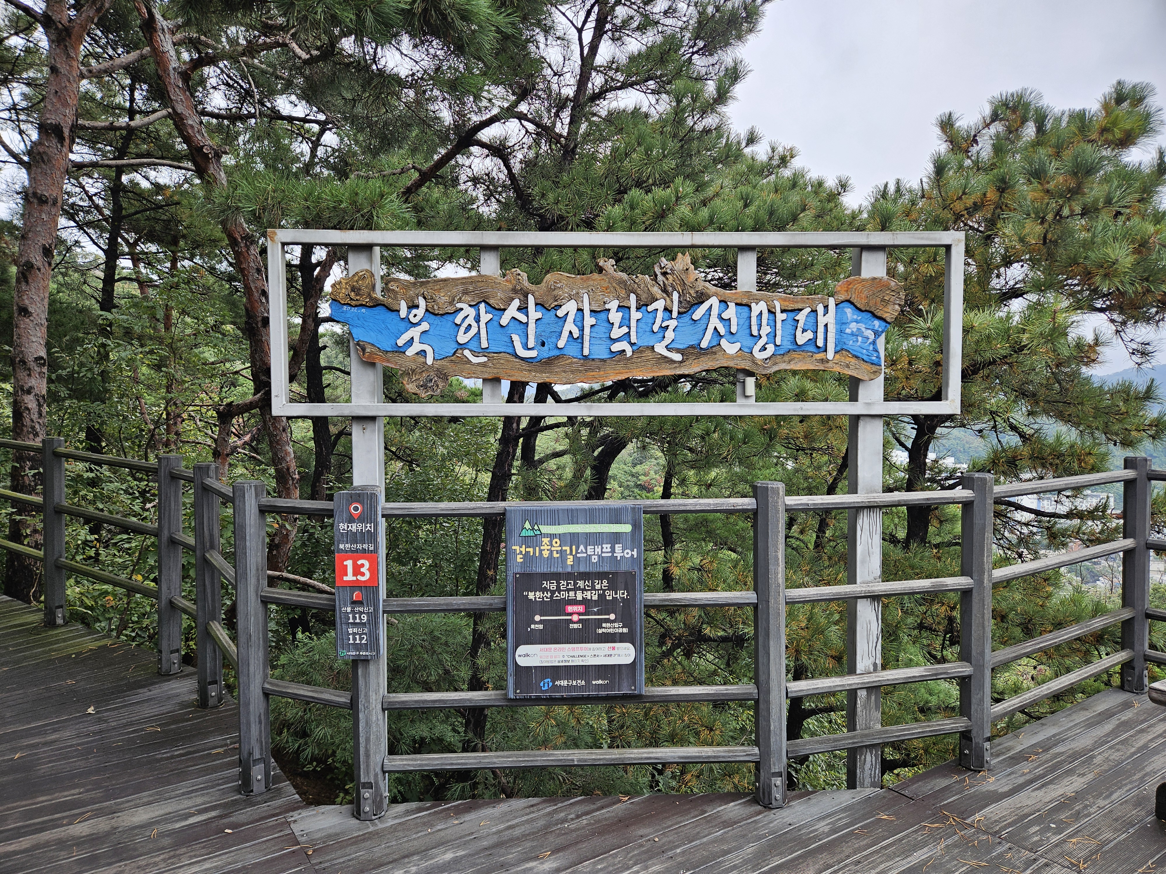 걷다 보면 서울 도심과 북한산 풍경이 어우러지는 조망이 펼쳐지며,