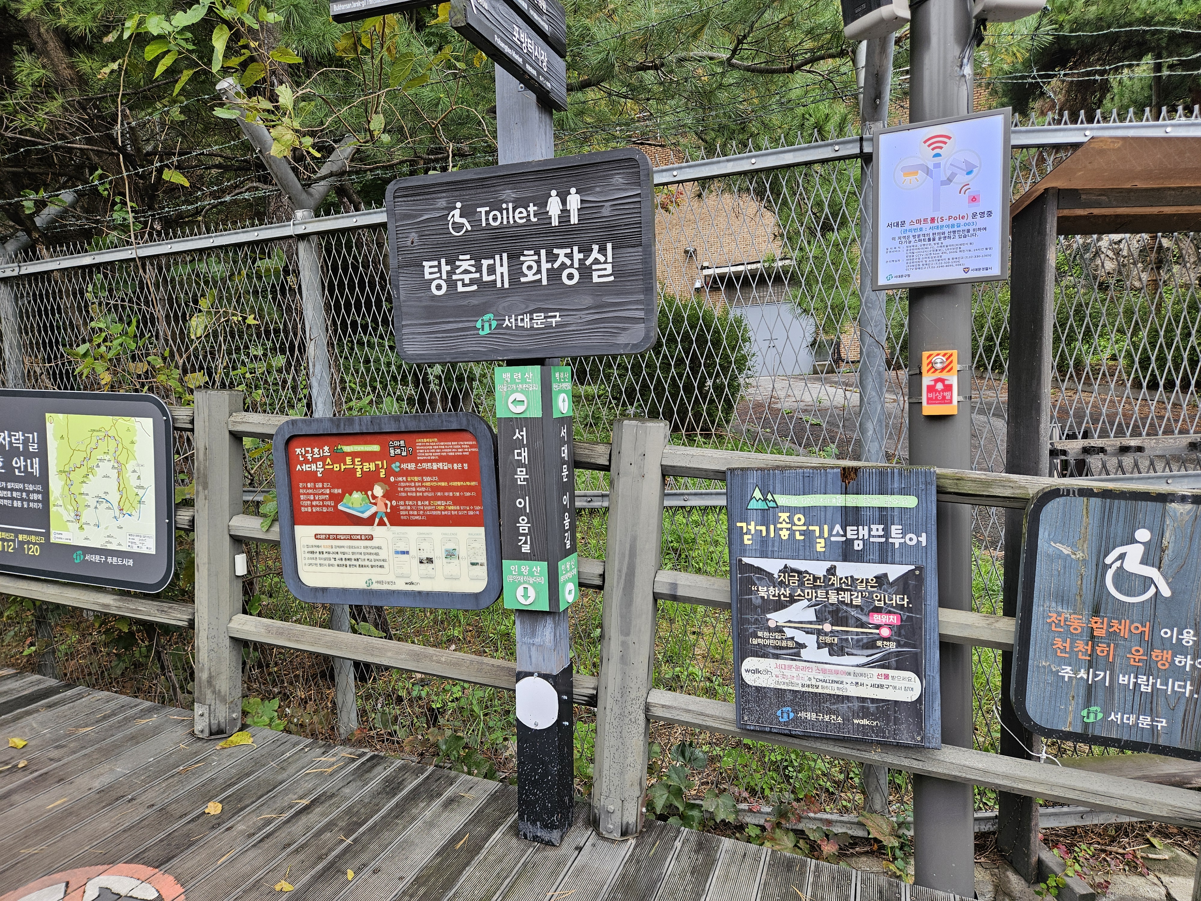 곳곳에 벤치와 쉼터, 안내 표지판이 마련되어 있어