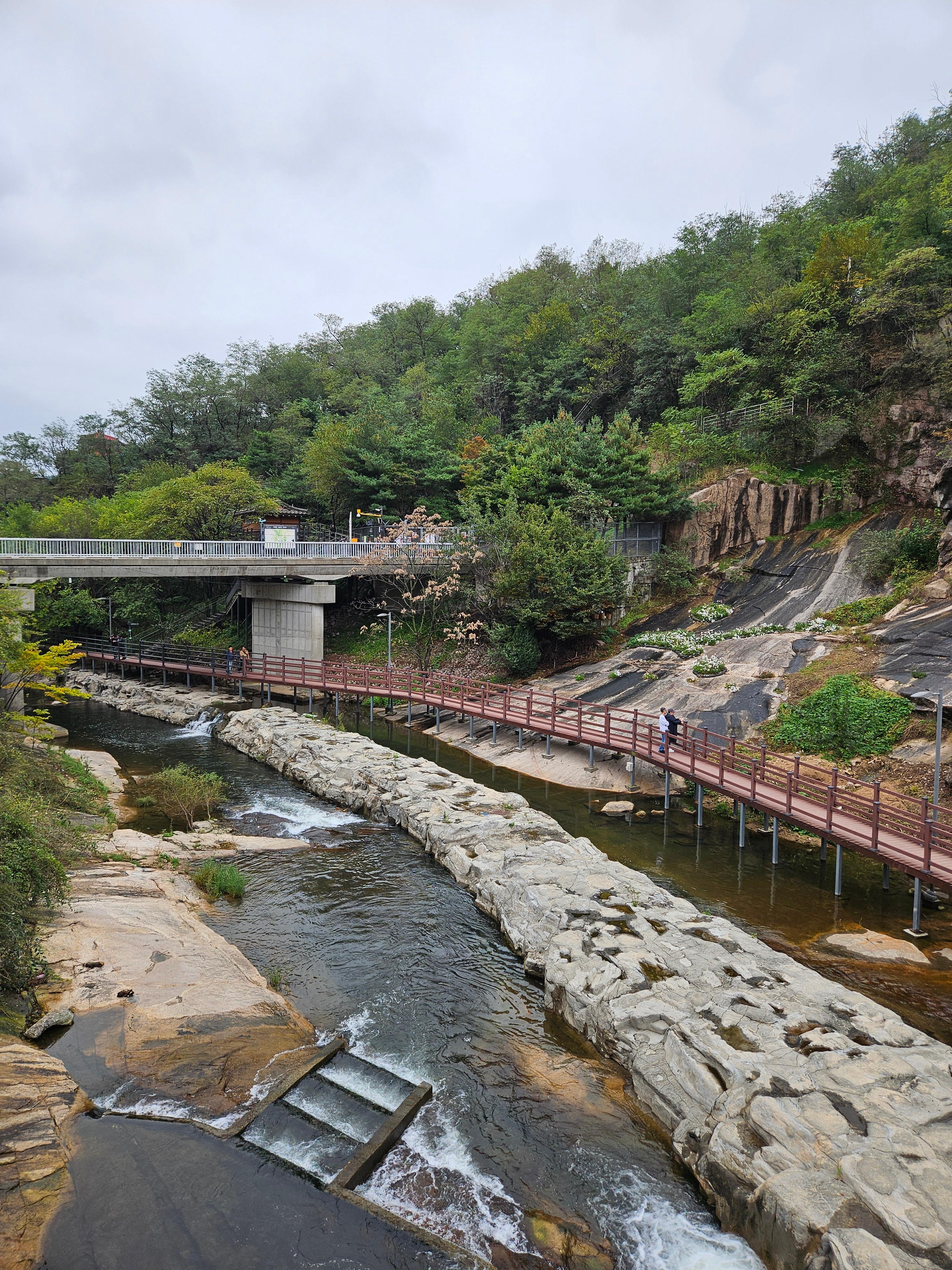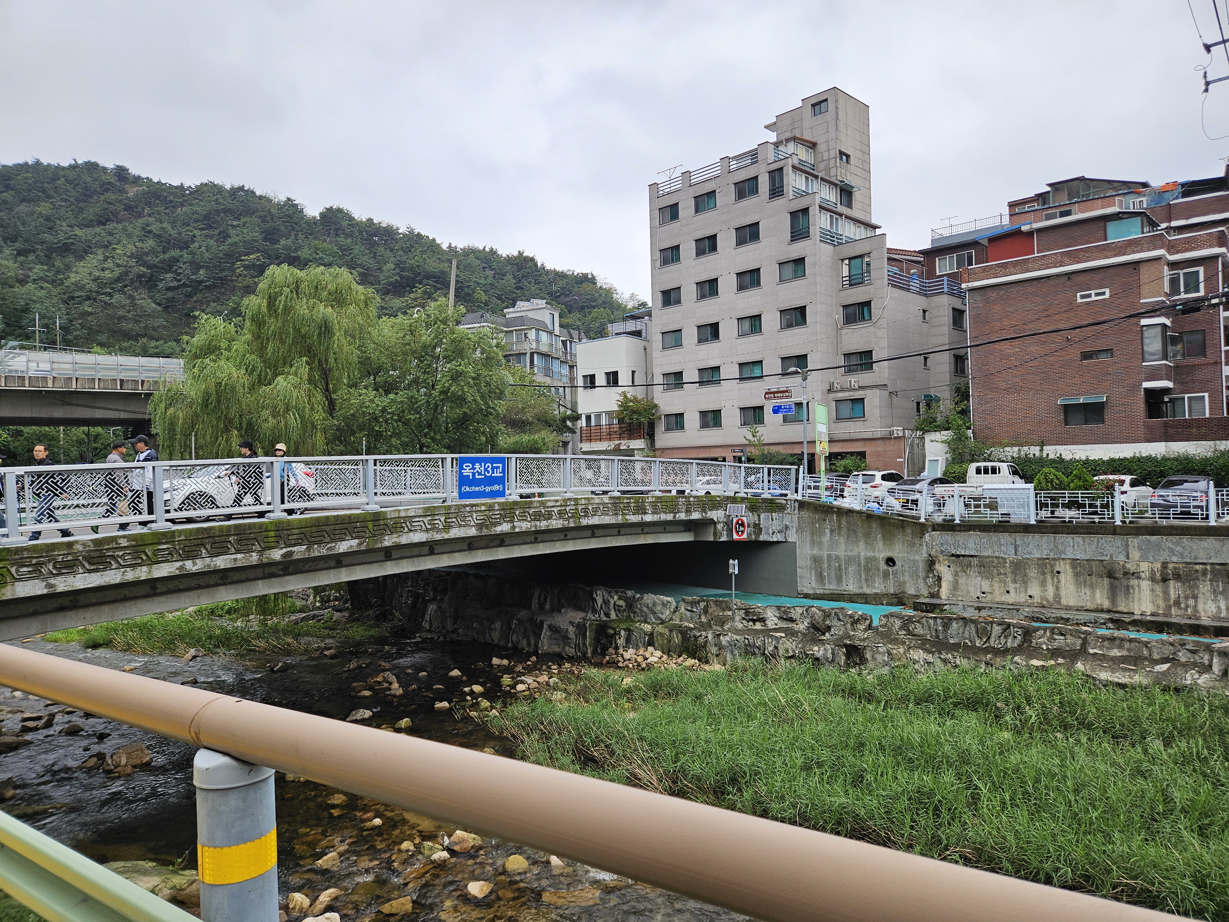 다리 아래 개천옆으로 조성된 데크 길로 가도 되지만 무장애 길을 안내하는 것이 목적이라 빌라 사이길로 다녀 왔습니다.^^