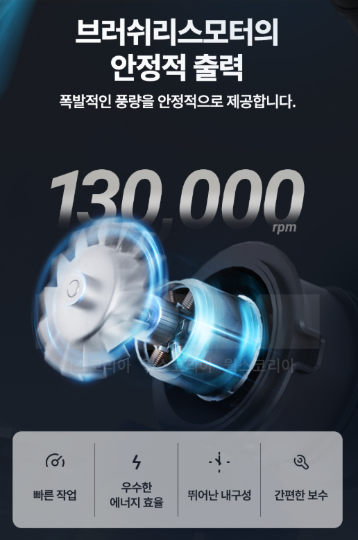 → 일반 송풍기보다 10배 이상 빠른 회전력, 드릴보다 70배 강력